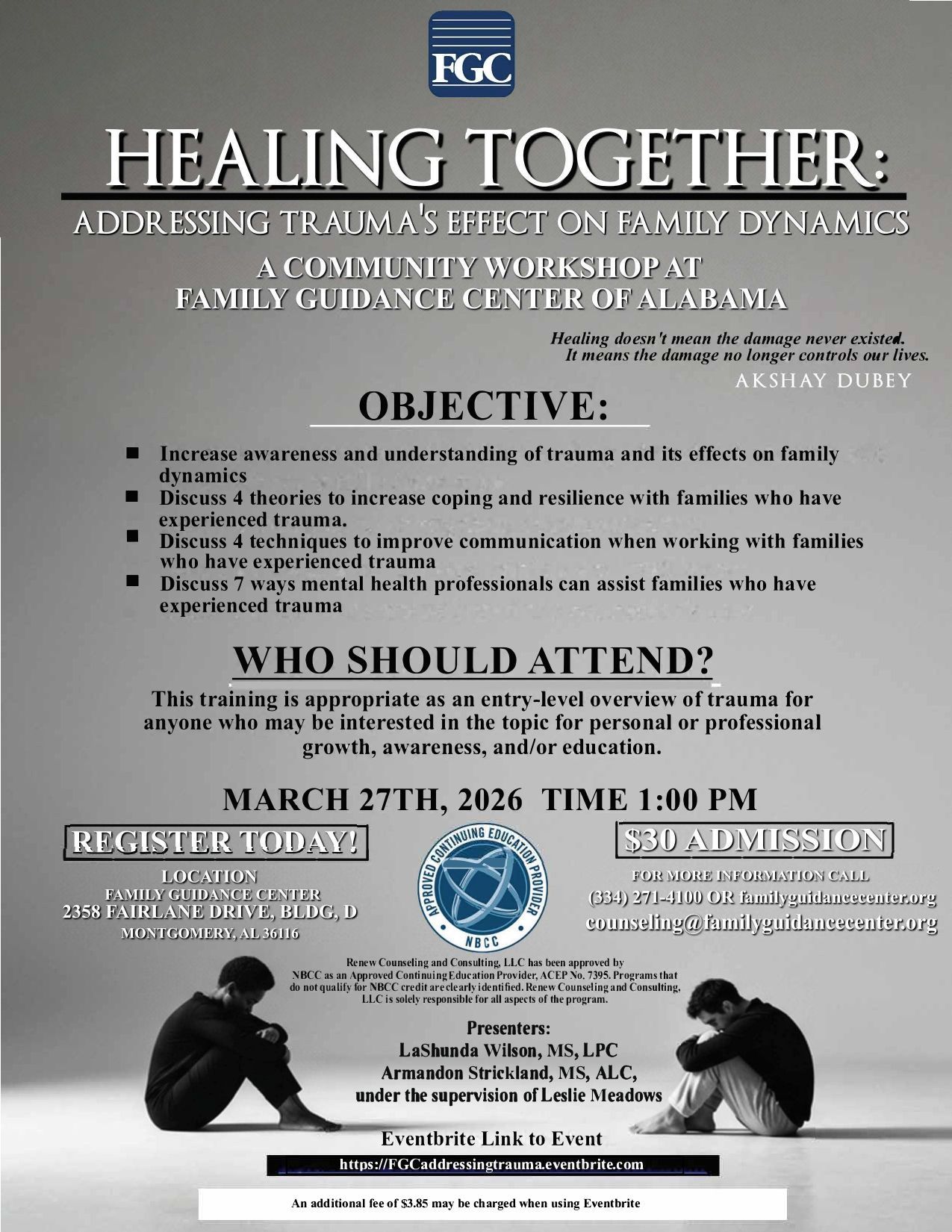 Location: Family Guidance Center, 2358 Fairlane Dr., Bldg. D, Montgomery, AL
